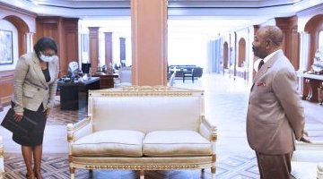 Ali Bongo a reçu ce lundi en audience au palais Rénovation Rose Christiane Ossouka Raponda, ...