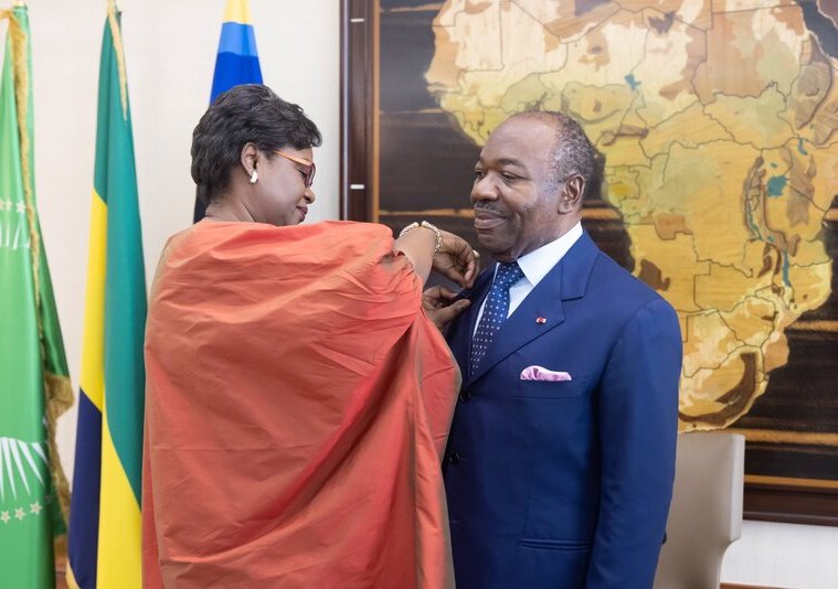Ali Bongo s’est vu décerner ce mardi au Palais Rénovation la distinction « HeforShe » de l’ONU Femmes des mains d’Oulimata Sarr, directrice régionale pour l’Afrique de l’ouest et du centre de cette organisation onusienne.