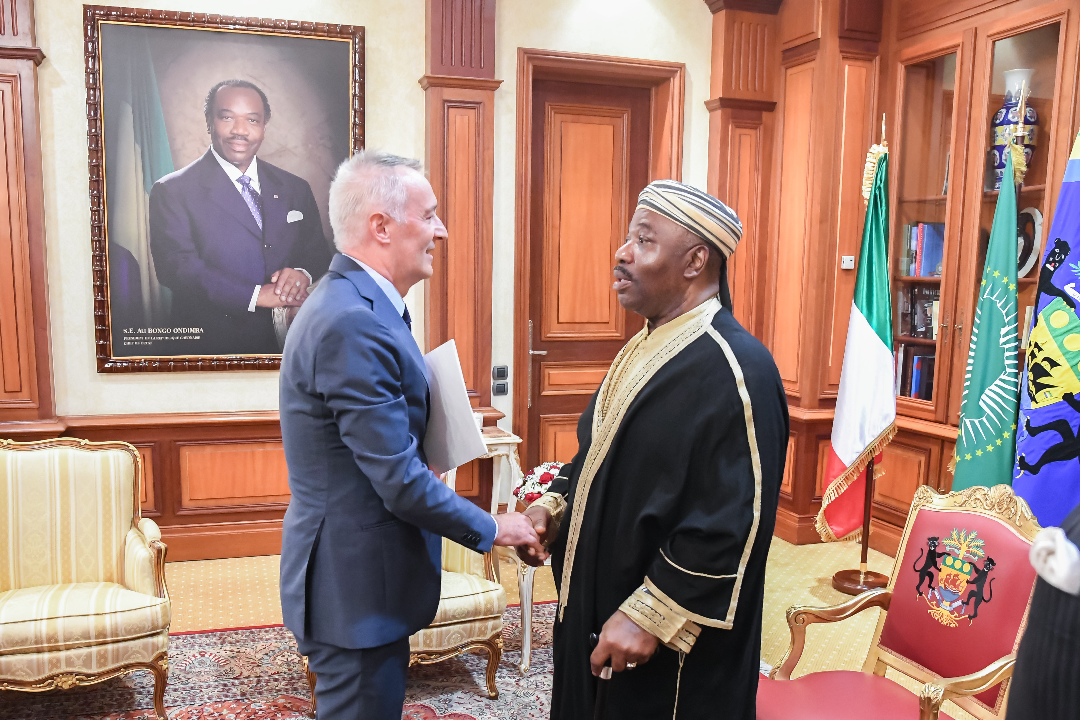 Ali Bongo Ondimba a reçu ce jour au Palais présidentiel, les Lettres de créance de trois nouveaux Ambassadeurs accrédités au Gabon lors d’une cérémonie circonstancielle, conformément à la pratique diplomatique.