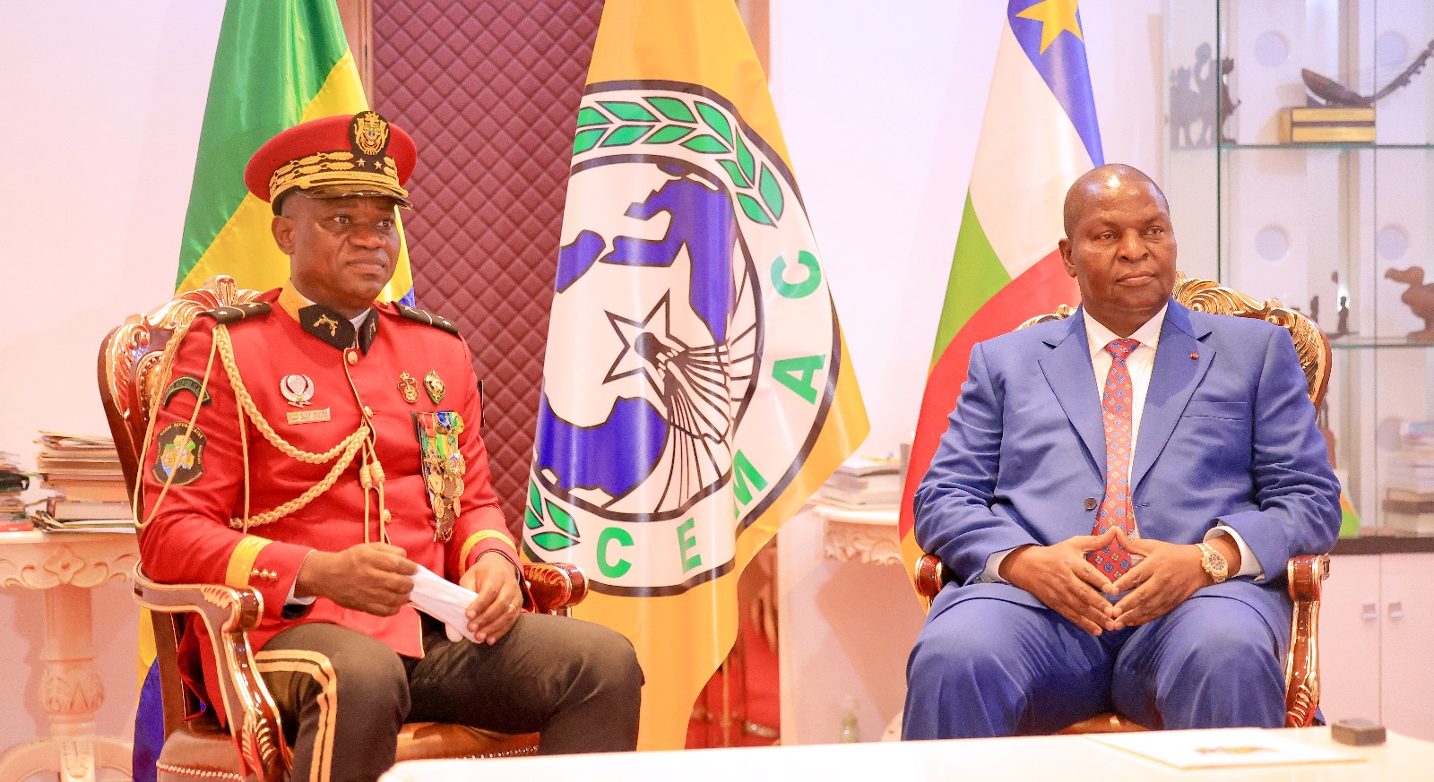 Résolument engagé dans sa politique de restauration des institutions de la République et du Gabon dans les grandes instances internationales, le général Brice Clotaire Oligui Nguema est venu faire à Faustin Archange Touadera le point sur les avancées de la Transition au Gabon au nombre desquelles la nomination imminente des membres de l’Assemblée nationale et du Sénat de la Transition en vue d’engager au plus vite le dialogue social avec toutes les couches de la population.