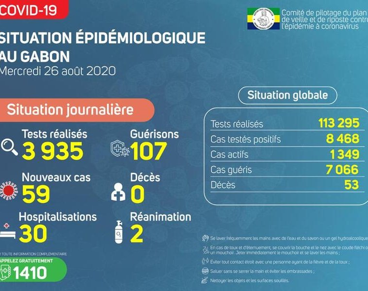 Gabon Matin vous livre le point journalier du Comité de pilotage du plan de veille et de riposte contre l’épidémie à Coronavirus au Gabon du 26 août 2020.