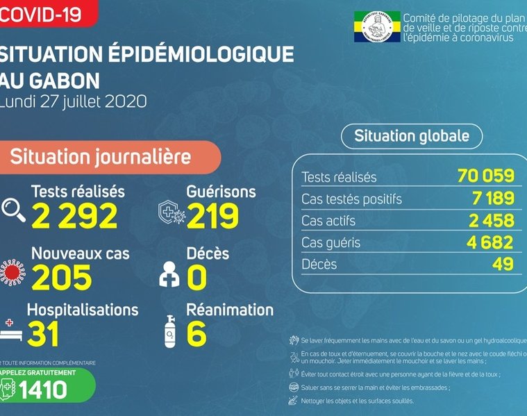 Gabon Matin vous livre le point journalier du Comité de pilotage du plan de veille et de riposte contre l’épidémie à Coronavirus au Gabon du 27 juillet 2020.