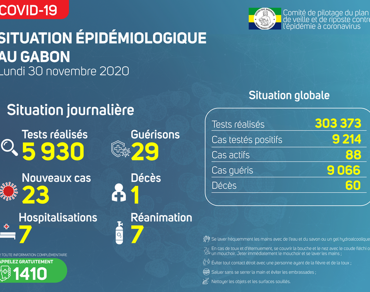 Coronavirus au Gabon : point journalier du 30 novembre 2020