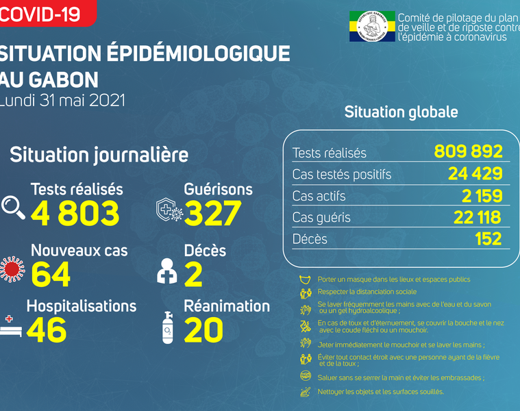 Coronavirus au Gabon : point journalier du 31 mai 2021