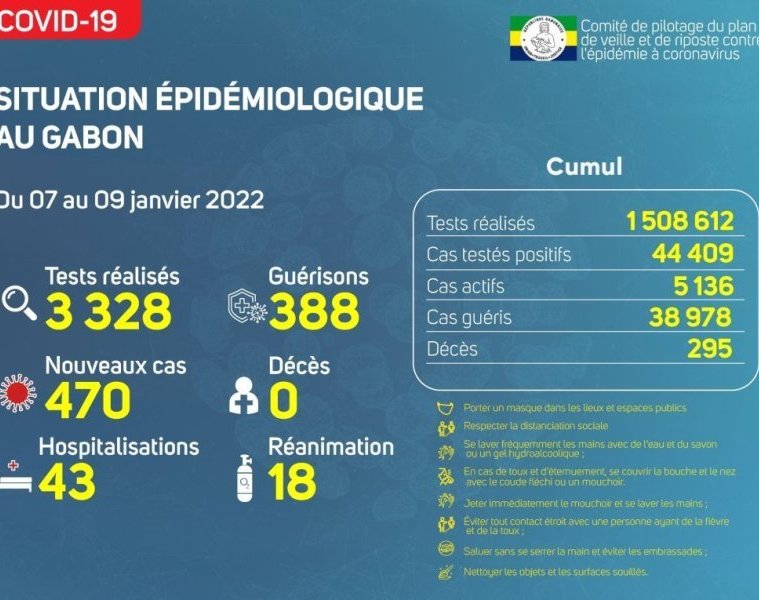 Coronavirus au Gabon : point journalier du 9 janvier 2022