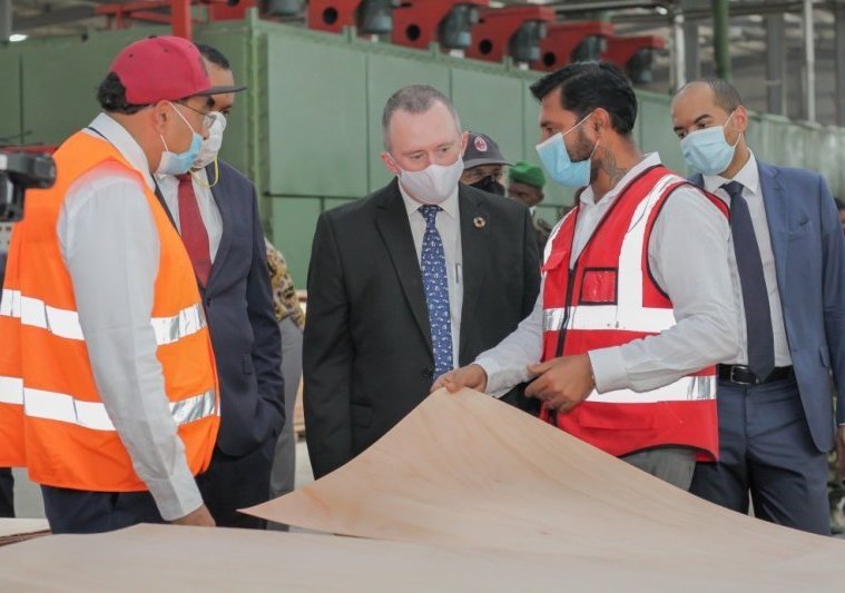 Le ministre des Eaux, des Forêts, de la Mer, de l’Environnement, chargé du Plan climat, des Objectifs de développement durable et du Plan d’affectation des Terres, Lee White, accompagné de son ministre délégué, Oswald Séverin Mayounou, et du directeur général des industries, du commerce, du bois et de la valorisation des produits forestiers, Auguste Ndouna Ango, a visité vendredi les unités de transformation du bois Greenply, Wood Tech, Cluter, et Starply Gabon situées dans la Zone économique spéciale de Nkok.