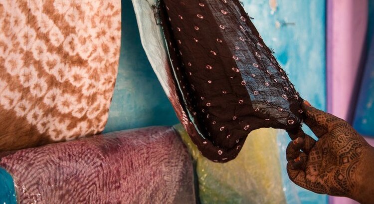 Un voile mauritanien fabriqué de manière traditionnelle, dans une boutique tenue par une migrante de retour au pays.