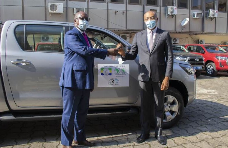 Dans le cadre de la riposte sanitaire contre la Covid-19, le Ministre de la Santé, Guy Patrick Obiang Ndong a réceptionné ce jour, des mains de Monsieur Robert Masumbuko, Représentant résident de la Banque africaine de développement (BAD), les clés de dix véhicules 4x4 mis à la disposition du Ministère de la Santé pour l’intensification des actions de surveillance épidémiologique, de contrôle de la Brigade mixte et de vaccination.